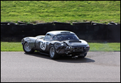 A couple of close calls:at right Patrick Watts got a little over enthusiastic in his 1964 Sunbeam Lister Tiger when maneuvering Madgwick Corner and at left:Galal Mahmoud suffers body damage to his 1963 semi-lightweight 'E'-type which puts him out of the race. | ![]() |